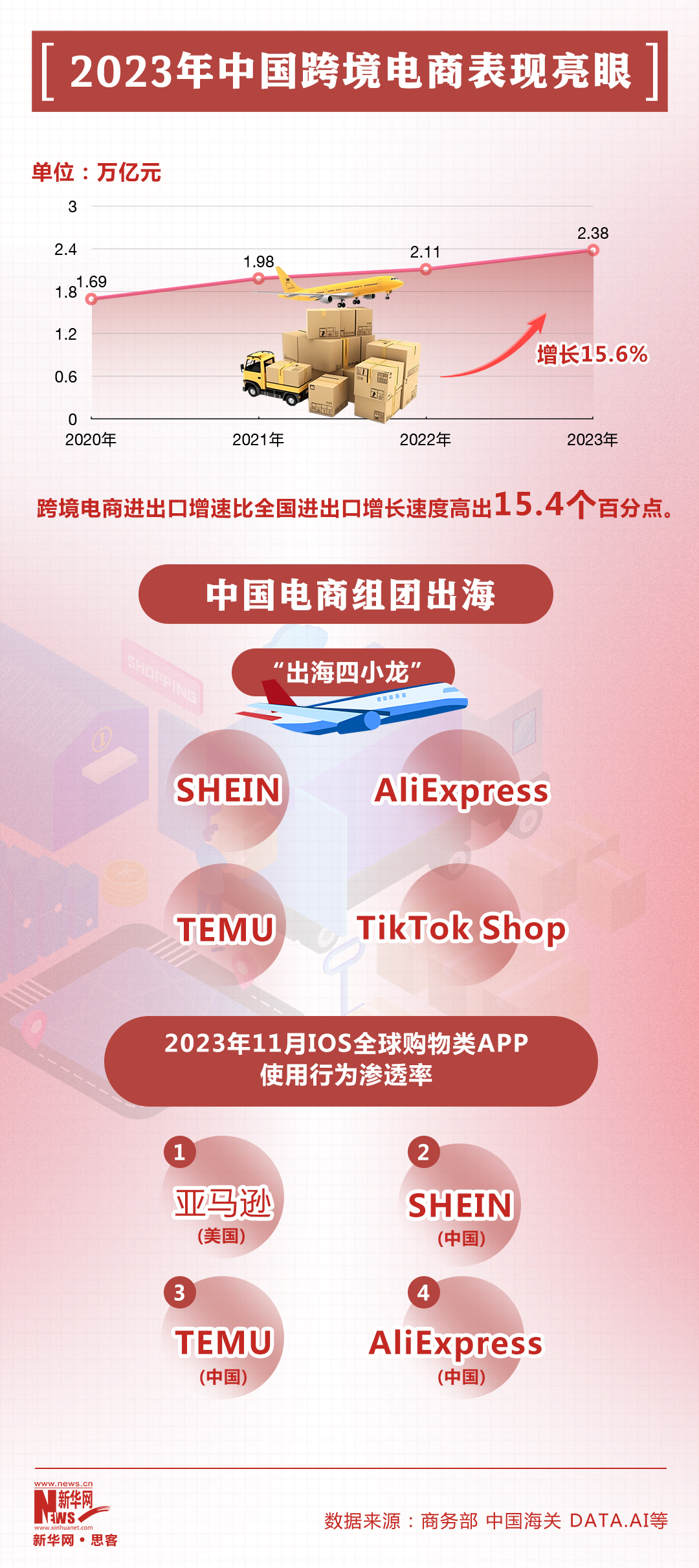 与以往中国商家在亚马逊、eBay等国外平台单打独斗不同的是,中国电商平台SHEIN、AliExpress、TEMU、TikTok Shop“出海四小龙”以支付、物流、仓储、运营的“全托管”模式让卖家实现轻松卖货,从而将更多的精力用于产品研发和生产上,实现中国卖家卖得安心,海外消费者买得放心。