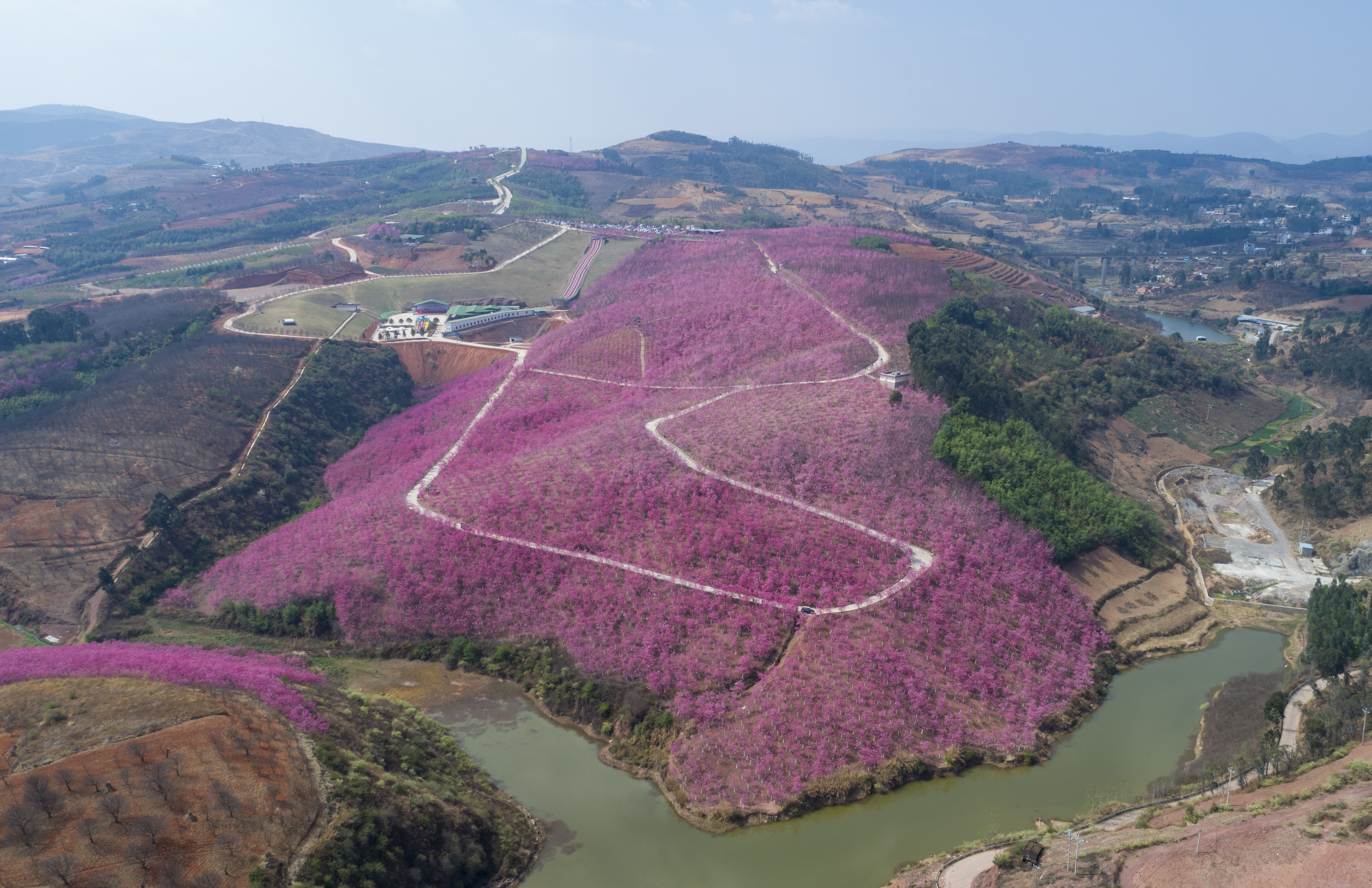 2023年3月1日拍摄的宜良县山后樱花谷一景(无人机照片)。新华社记者 陈欣波 摄