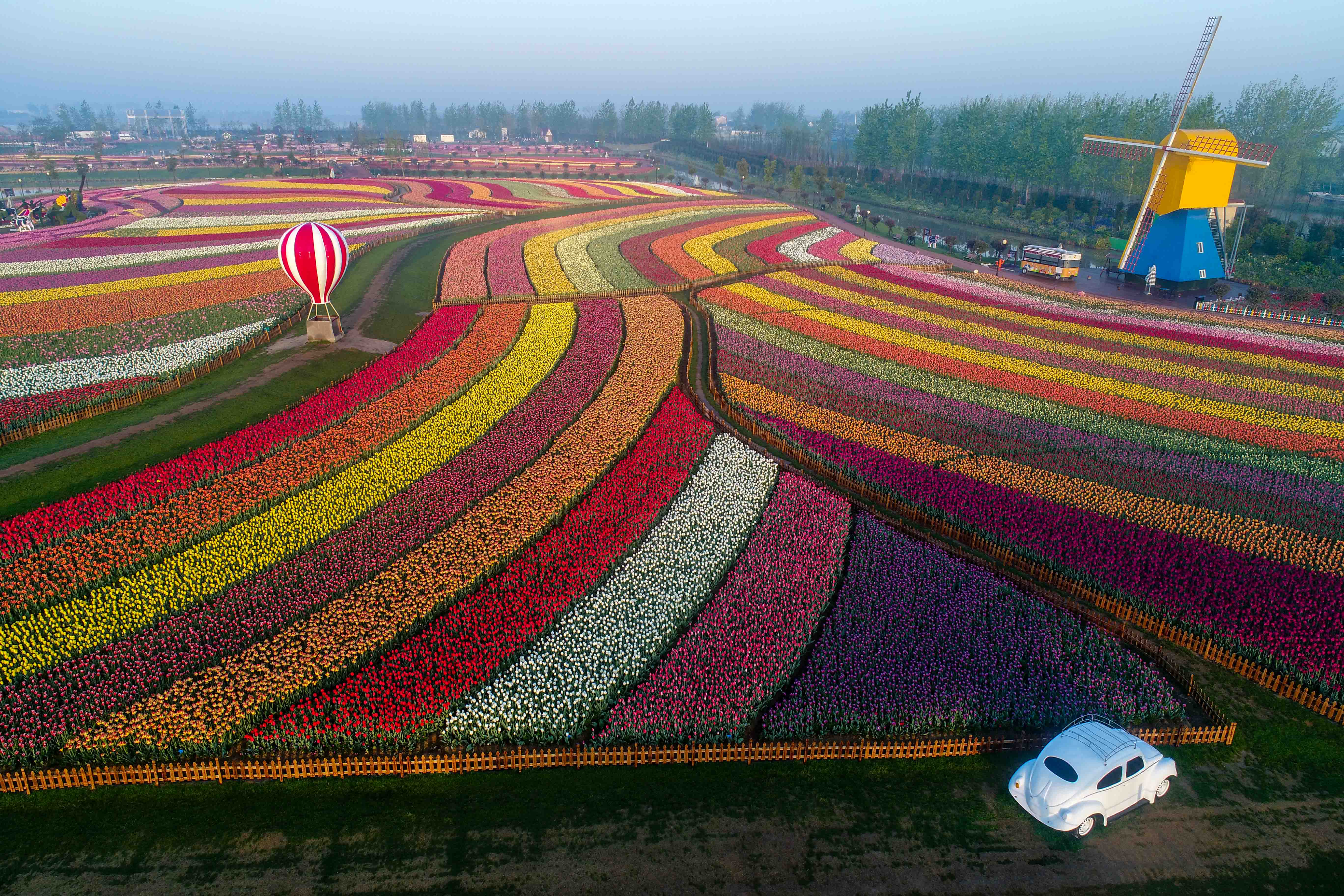 游人在荷兰花海景区赏花游玩。新华社发(周古凯 摄)