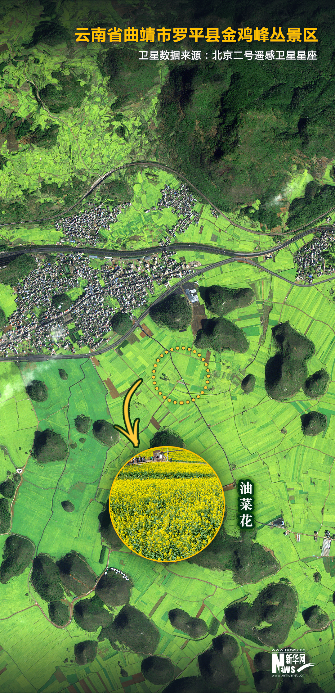 2月19日,游人在云南省罗平县金鸡峰丛拍摄油菜花。新华社记者 胡超 摄