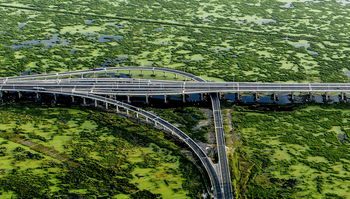 这是大庆龙凤湿地大桥横跨龙凤湿地自然保护区。新华社记者 王凯 摄