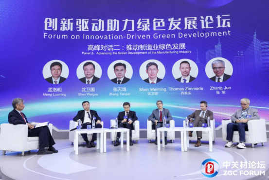 孟洛明(左一)主持“高峰对话二:推动制造业绿色发展”