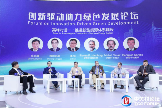 朱光耀(左一)主持“高峰对话一:推进新型能源体系建设”