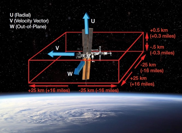 国际空间站“披萨盒”碎片预警区域示意(图源:NASA)