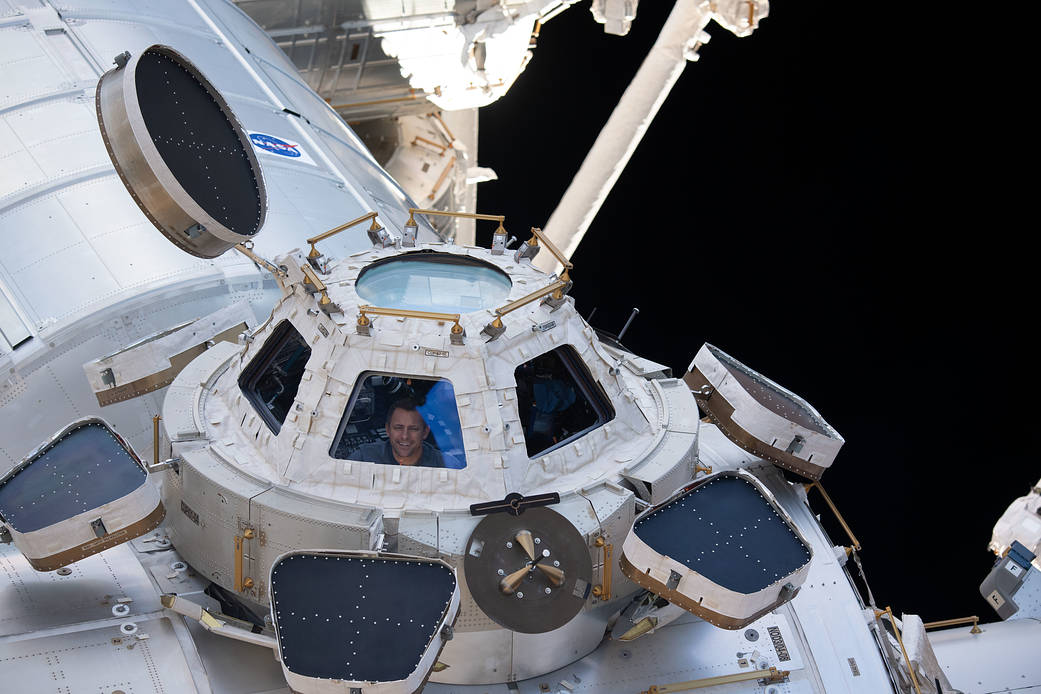 国际空间站穹顶舱窗户遭空间碎片撞击(图源:NASA)