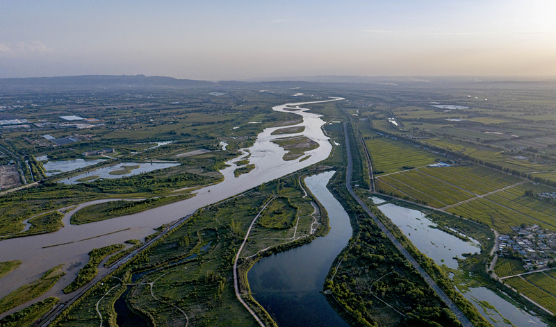 这是8月23日在宁夏吴忠市利通区拍摄的黄河(无人机照片)。新华社记者 杨植森 摄