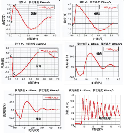 ▲对接缓冲过程数值仿真:单项偏差条件下的衰减曲线(图源:《航天器工程》)