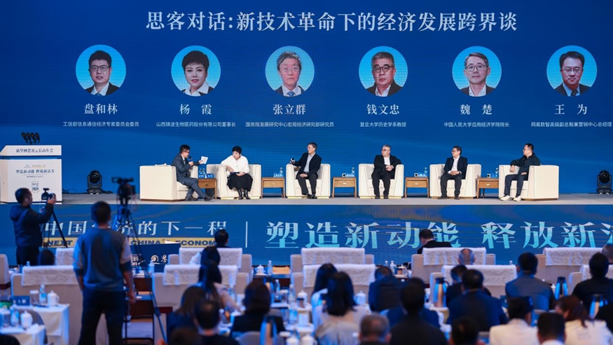 新华网思客云丘山年会现场,图为《思客对话:新技术革命下的经济发展跨界谈》。新华网 发