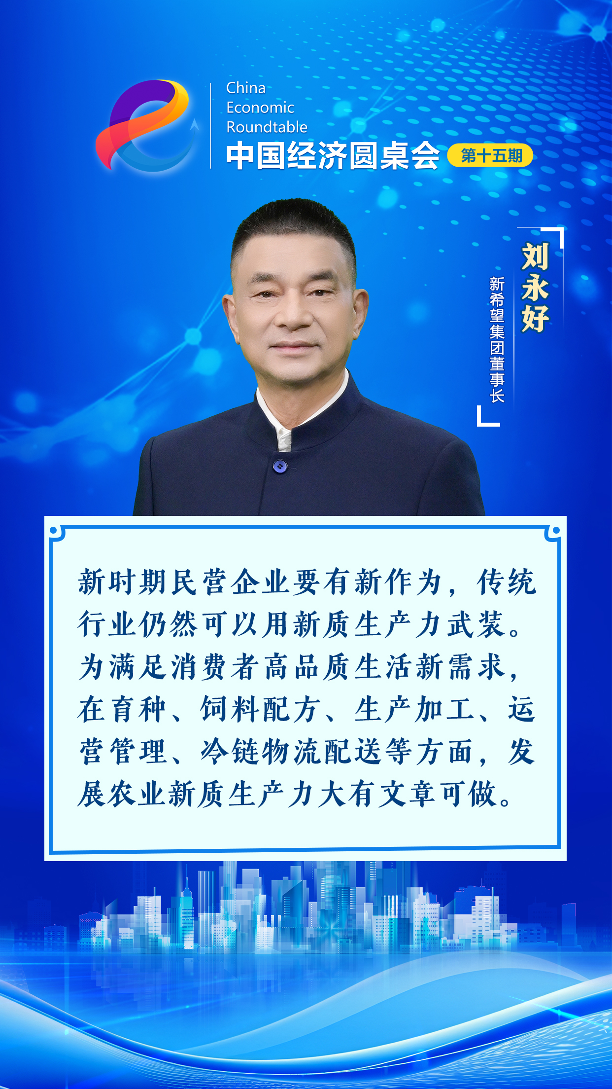 新华社推出“中国经济圆桌会”大型全媒体访谈节目,邀请国家发展改革委民营经济发展局副局长刘民,中国国际经济交流中心资深专家委员朱民,新希望集团董事长刘永好,上海西井科技股份有限公司董事长谭黎敏共话民营企业新发展。