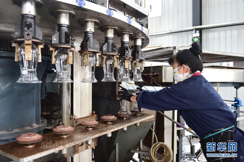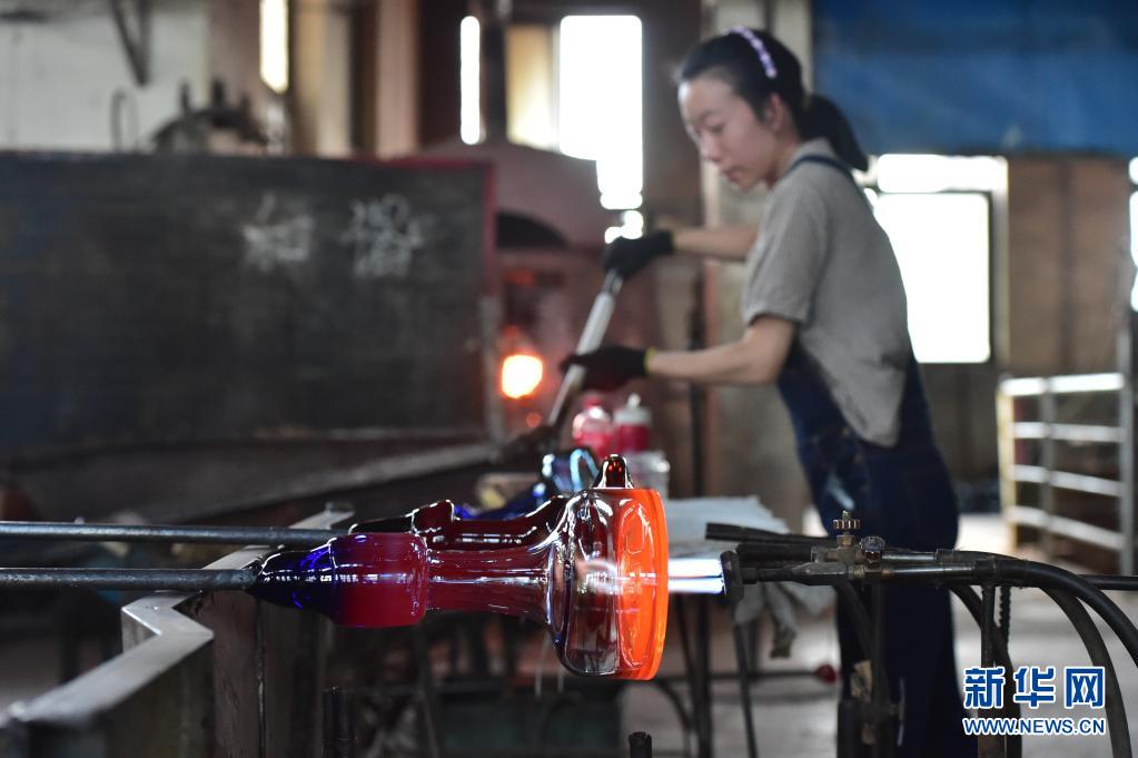 5月26日,山西宏艺玻璃器皿有限责任公司的工人在制作玻璃器皿。新华社记者 柴婷 摄