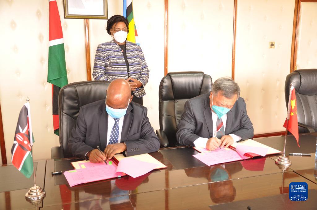 2月14日,中肯双方代表在交接文件上签字。新华社发(查尔斯·奥尼扬戈 摄)