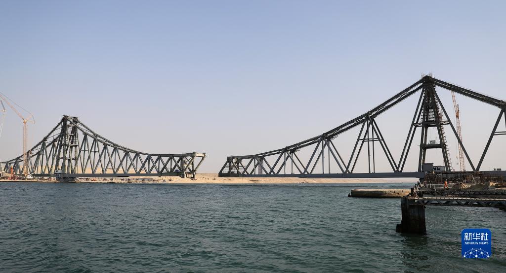 在埃及伊斯梅利亚省,由中企承建的苏伊士运河铁路桥旧桥改造升级项目主体结构近日完工。目前施工人员正抓紧收尾,以确保早日交付埃方。