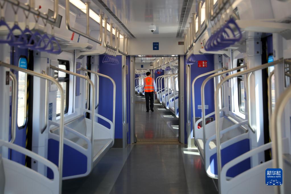 这是7月3日在埃及开罗东部拍摄的一辆试运行的轻轨列车内部。新华社记者 隋先凯 摄