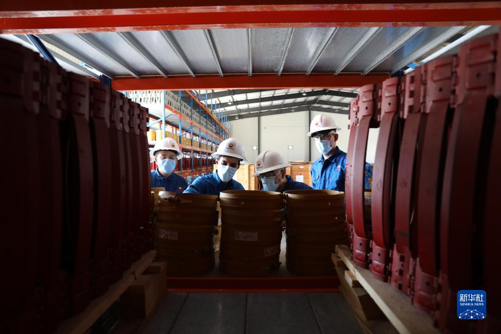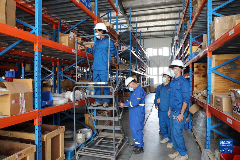 9月24日,在伊拉克米桑省,中伊双方工作人员在哈法亚油田一处库房里清点设备。新华社发(哈利勒·达伍德摄)