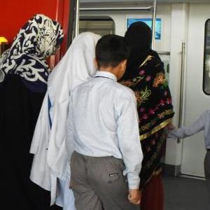 10月24日,人们搭乘巴基斯坦拉合尔的橙线地铁。新华社发(萨贾德 摄)