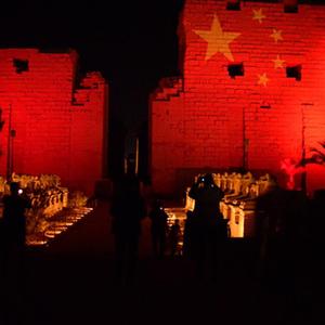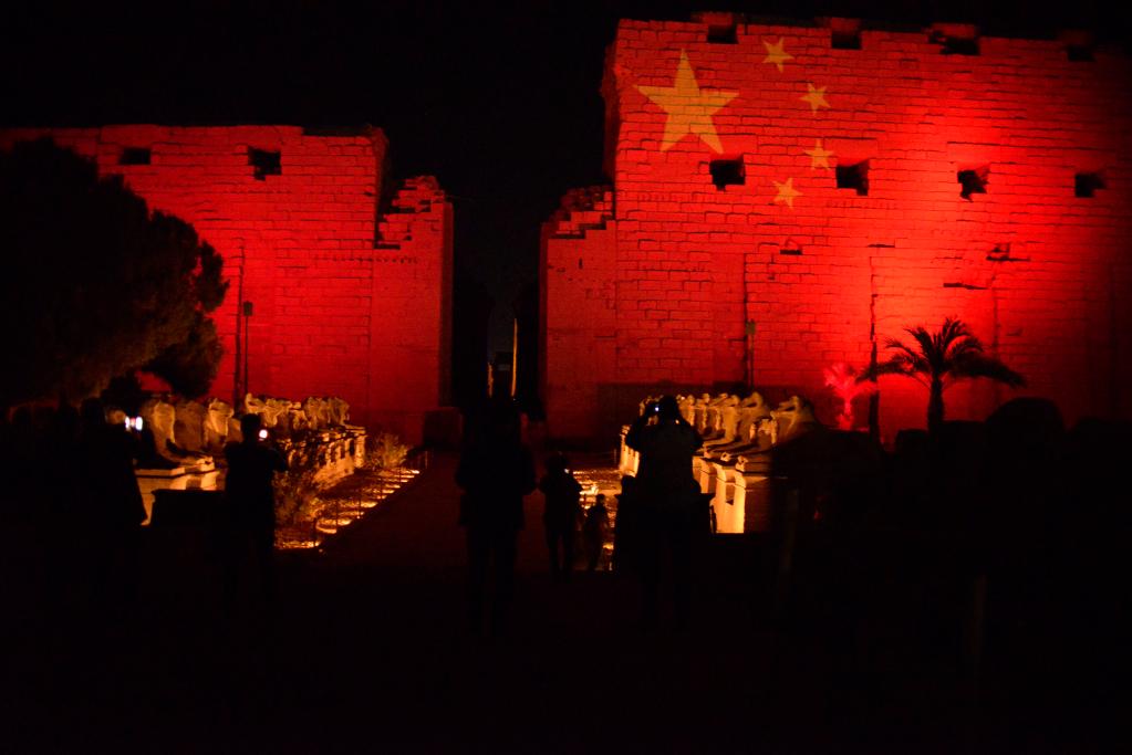 2020年3月1日晚,位于埃及开罗、卢克索、阿斯旺的三大世界文化遗产地以灯光秀的形式同时点亮五星红旗,以此表达埃及政府和人民对中国抗击新冠肺炎疫情的支持。图为当天在埃及卢克索拍摄的卡尔纳克神庙。新华社发(拉德万摄)