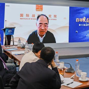 1月10日,新华网第十三届“纵论天下”国际问题研讨会在北京举办。图为中共中央党校(国家行政学院)国际战略研究院副院长赵磊通过视频发表主题演讲。新华网 杨霁昕 摄