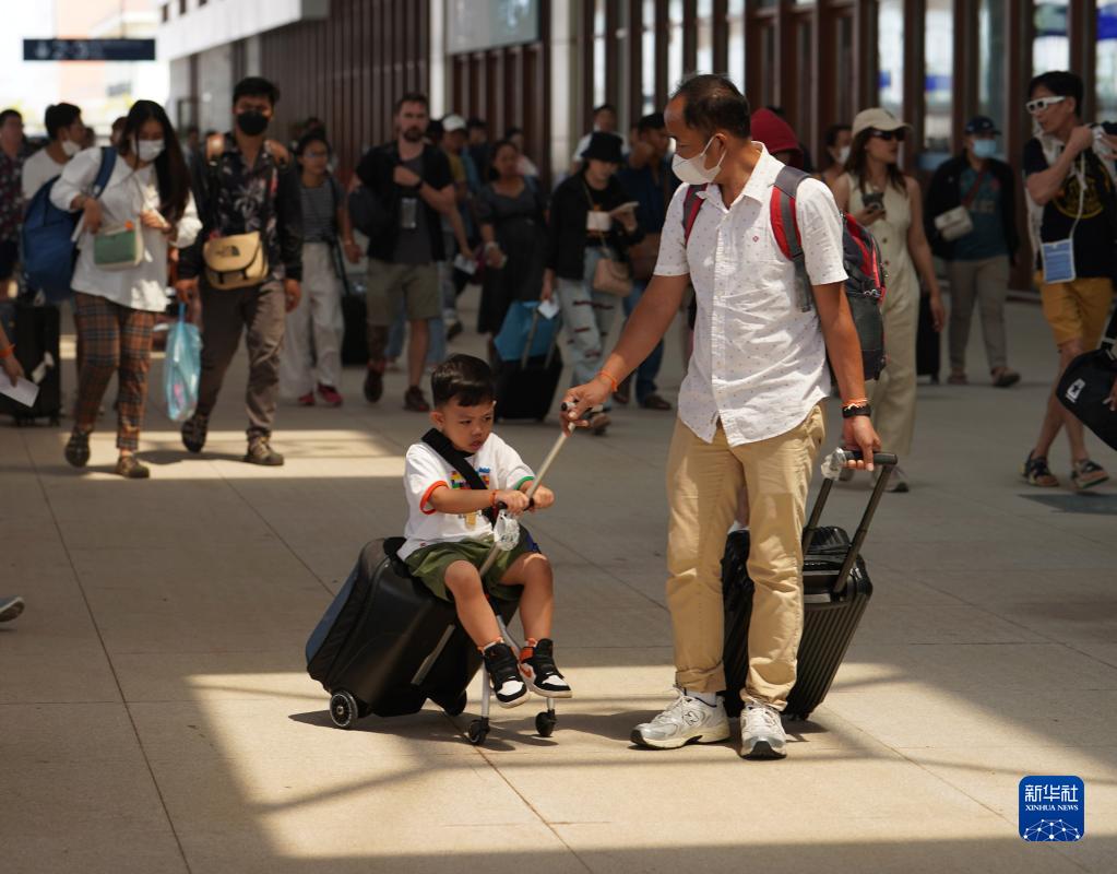 4月15日,在老挝万象,旅客在中老铁路万象站出站。新华社记者 邢广利 摄