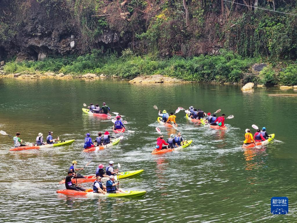 4月16日,游客在老挝万荣漂流。新华社记者 邢广利 摄