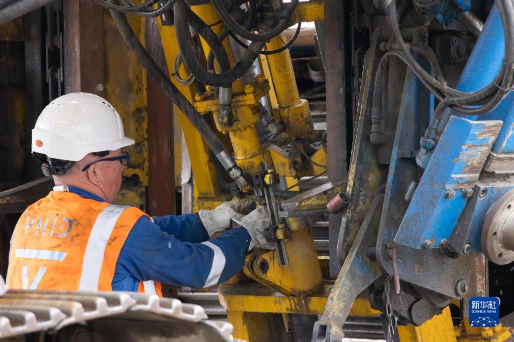 5月30日,在匈塞铁路匈牙利段孔圣米克洛什-陶什站施工现场,工作人员启动铺轨前检修铺轨机组。