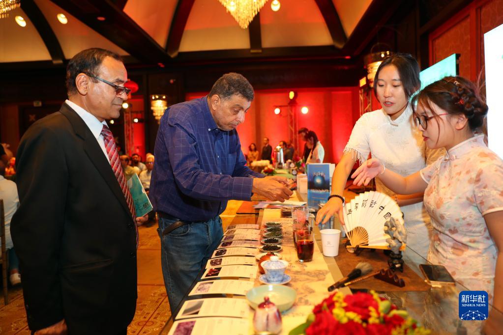 5月25日,嘉宾在埃及开罗举行的“茶和天下·雅集”活动现场了解中国茶。