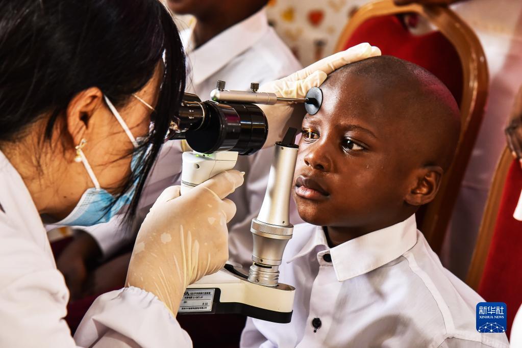 在喀麦隆首都雅温得“孩子为重”孤儿中心,中国驻喀大使馆联合中国第22批援喀医疗队为来自两所孤儿中心的约100名孤儿检查了视力、口腔和心肺功能等。