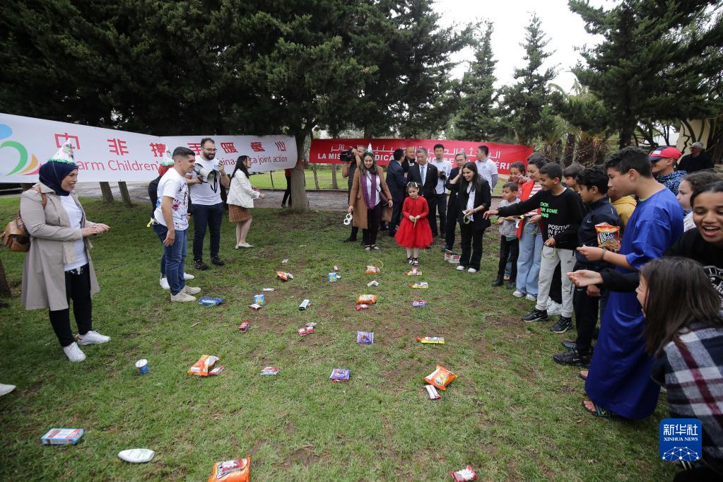 5月31日,在阿尔及尔达拉利亚SOS儿童村,中国驻阿尔及利亚大使馆、中国援阿医疗队联合中国建筑股份有限公司阿尔及利亚公司举办儿童节活动。新华社发