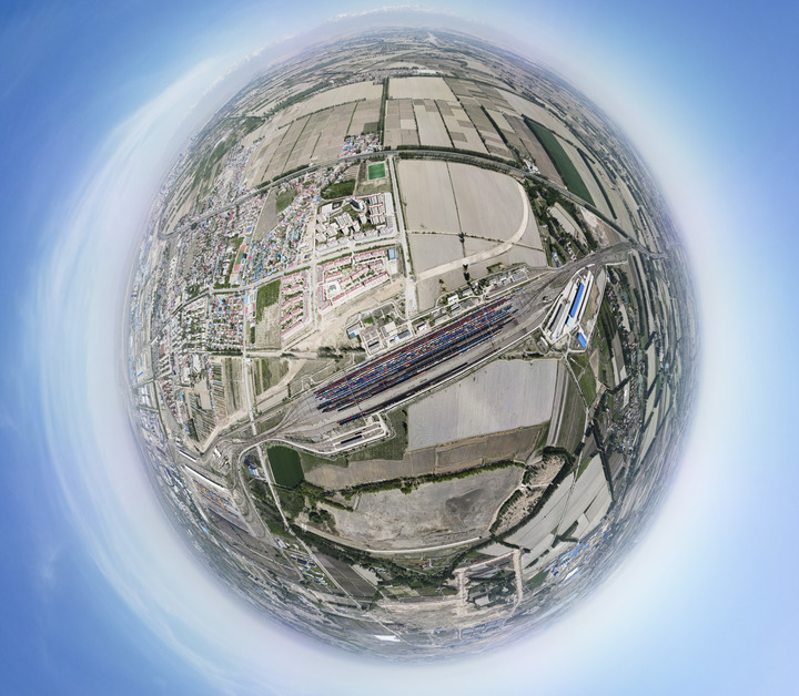 新疆霍尔果斯铁路口岸驼峰场(无人机全景照片)。新华社记者 郝昭 摄
