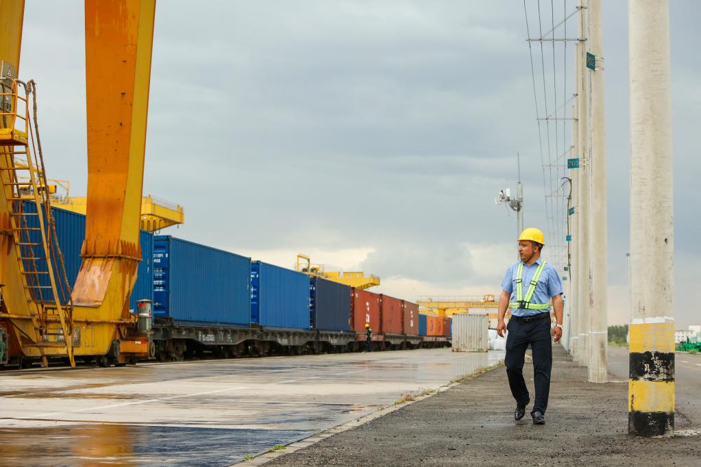 2013年,“一带一路”倡议首次提出。正是那一年,海米提来到距家乡伊宁市不远的霍尔果斯站工作。他先后担任过铁路货运员、货运值班员、生产调度,目前带领十几个人的班组负责进出境货物的装卸工作。