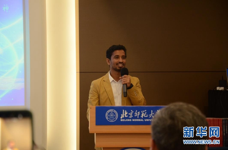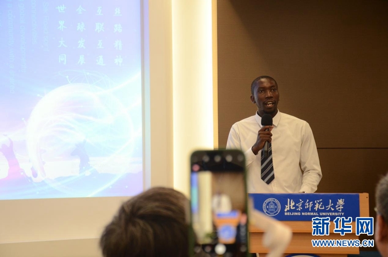 图为北京师范大学一带一路学院留学生洛基在发言。新华网 陈畅 摄