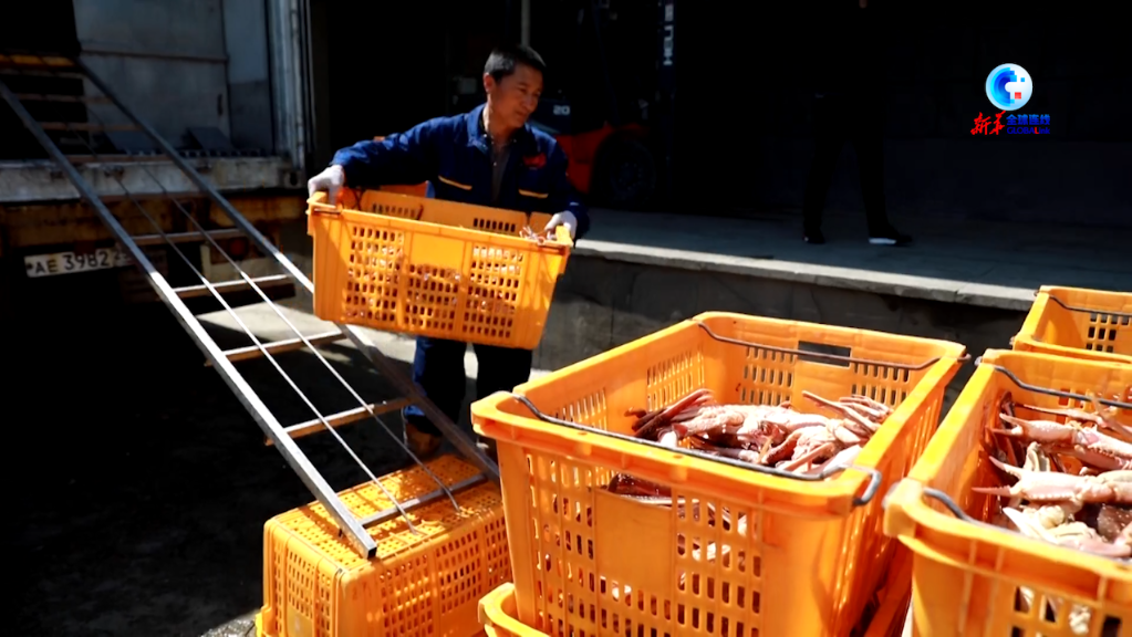 每天早上7点,吉林珲春口岸国门打开,一辆辆满载鲜活帝王蟹、雪蟹的货运车鱼贯而出。这里地处图们江下游,距日本海15公里,周边分布着俄罗斯多个优质港口,毗邻地区海域每年可产数百万吨水产。