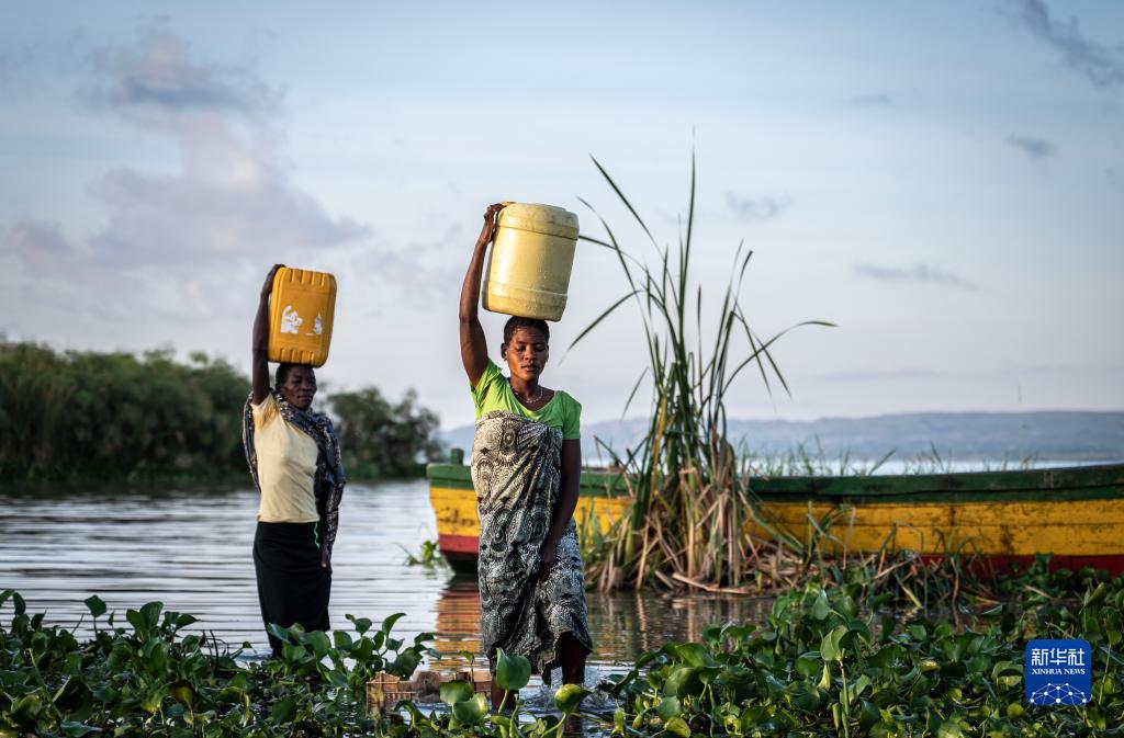 6月12日,村民在坦桑尼亚姆万扎省维多利亚湖畔打水。在姆万扎省输水工程尚未覆盖区域,部分居民仍使用旧有方式取水。