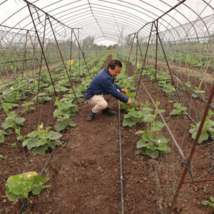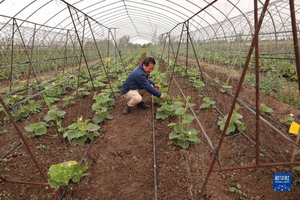 7月25日,在莫桑比克马普托省博阿内地区,中国技术员顿新洪在中莫农业技术示范中心蔬菜大棚内查看蔬菜。
