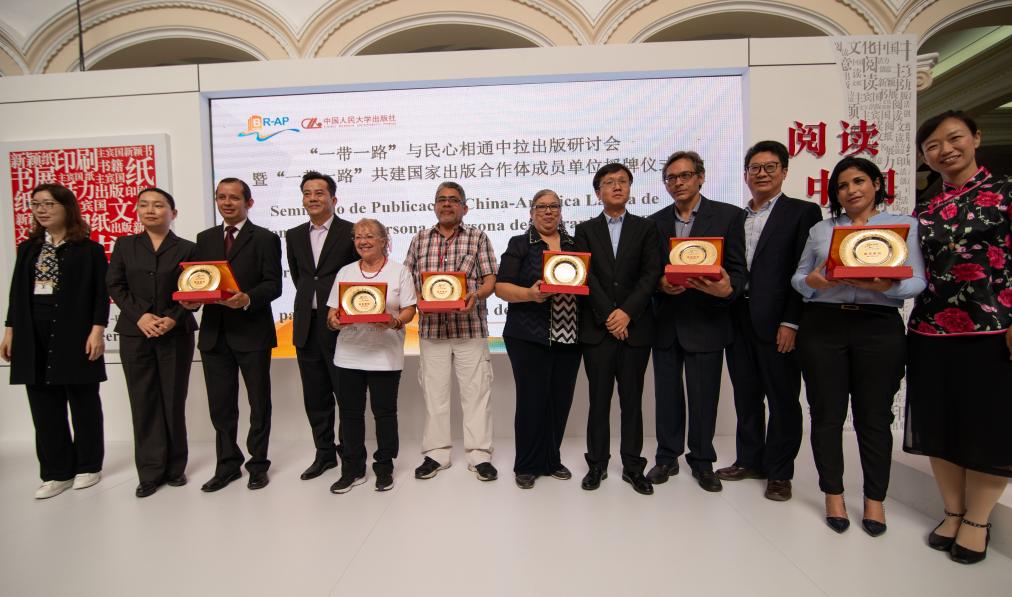 2019年11月9日,“一带一路”与民心相通中拉出版研讨会暨“一带一路”共建国家出版合作体成员单位授牌仪式在委内瑞拉首都加拉加斯举行。新华社发(萨尔戈多摄)