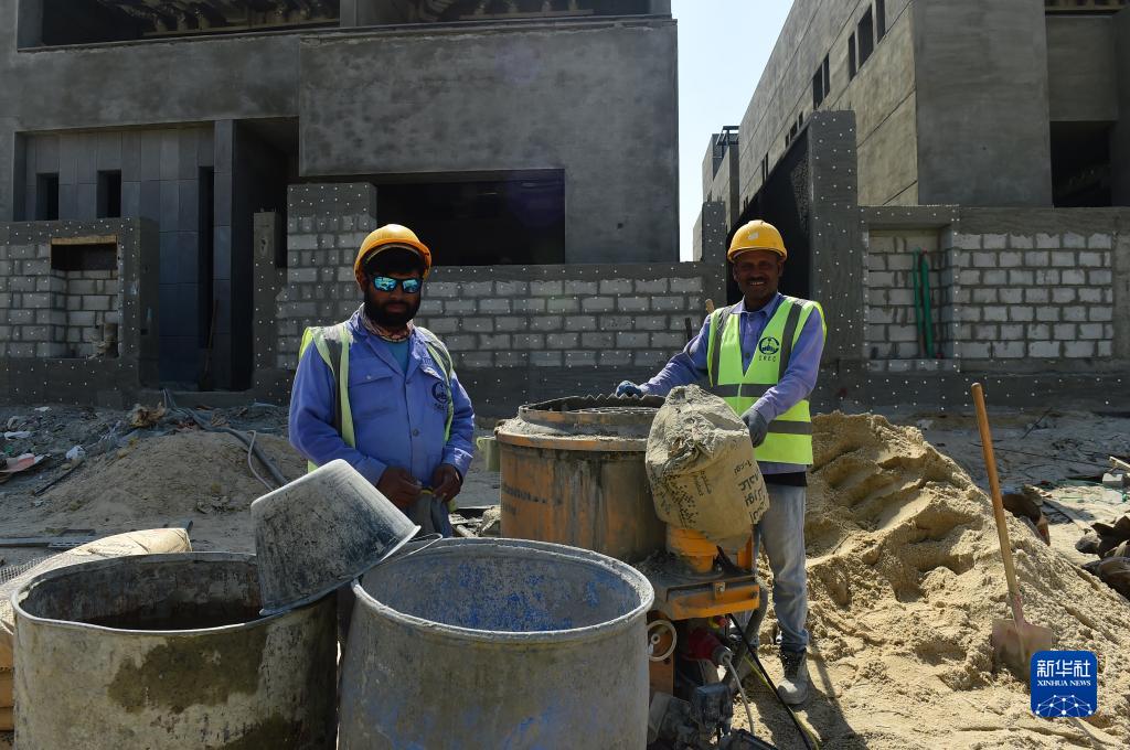 8月6日,工人在科威特艾哈迈迪省的T1210住宅群项目工地工作。