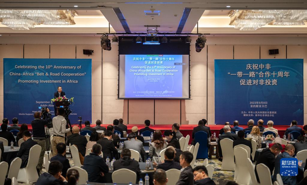 这是9月8日在埃塞俄比亚首都亚的斯亚贝巴拍摄的“庆祝中非‘一带一路’合作十周年暨促进对非投资”主题会议现场。