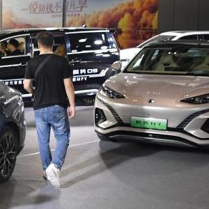 观众在2023欧亚经济论坛经贸合作博览会暨中国(陕西)进出口商品展上参观新能源汽车(9月22日摄)。新华社记者 邵瑞 摄