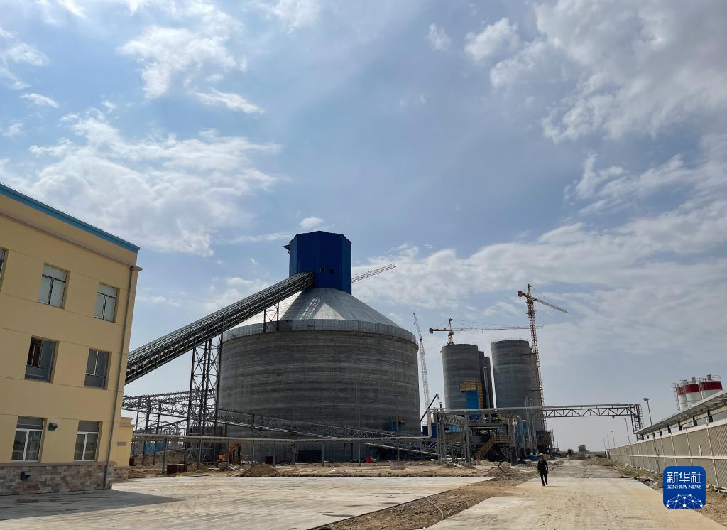 这是9月16日在乌兹别克斯坦撒马尔罕州拍摄的水泥生产线项目熟料库。