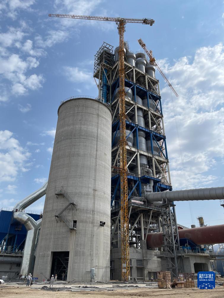 这是9月16日在乌兹别克斯坦撒马尔罕州拍摄的水泥生产线项目预热器。