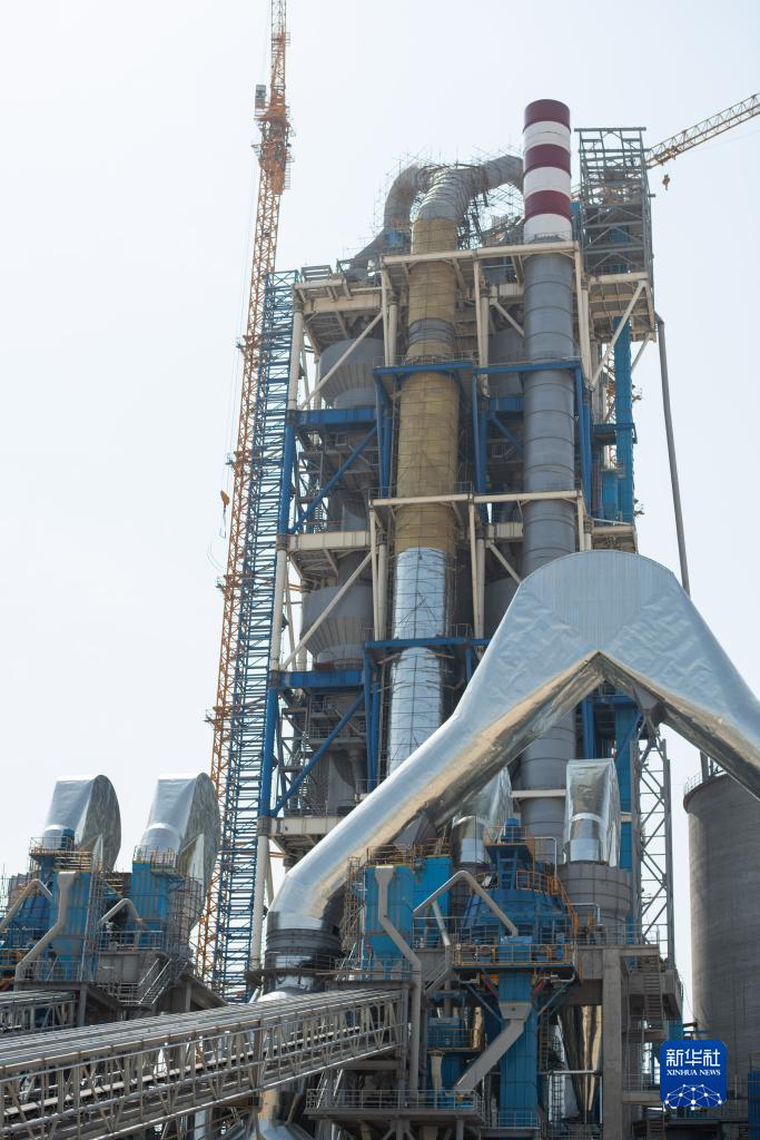 这是9月16日在乌兹别克斯坦撒马尔罕州拍摄的水泥生产线项目预热器。