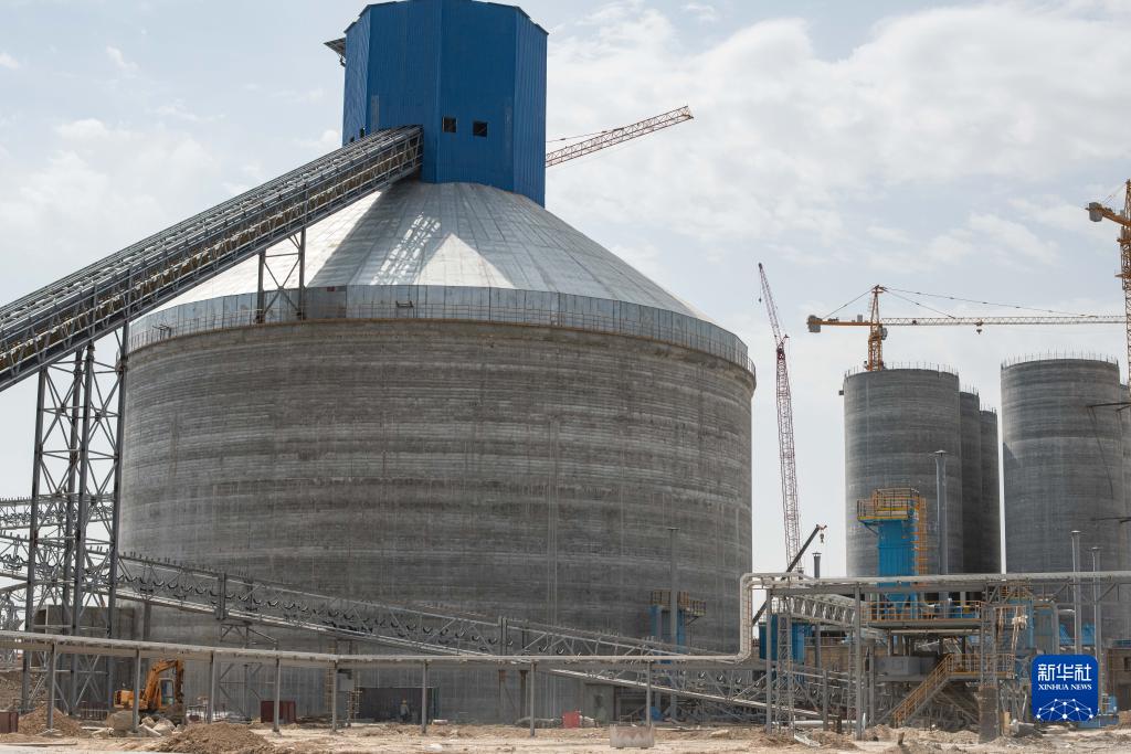 这是9月16日在乌兹别克斯坦撒马尔罕州拍摄的水泥生产线项目熟料库。