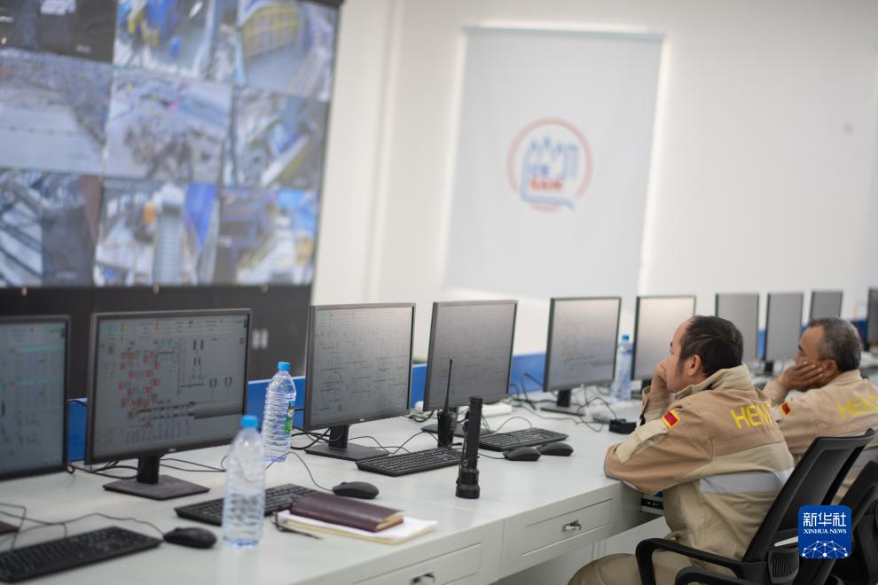 这是9月16日在乌兹别克斯坦撒马尔罕州拍摄的水泥生产线项目中控室。