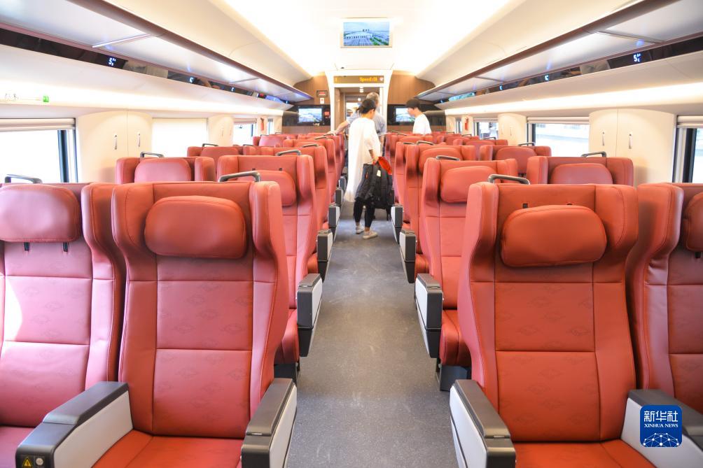 这是在印度尼西亚雅万高铁高速动车组上拍摄的车厢内景(9月4日摄)。