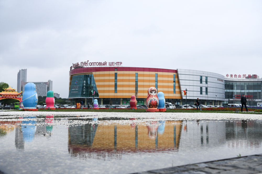 俄罗斯居民在布拉戈维申斯克“三只鲸鱼”中国市场购物