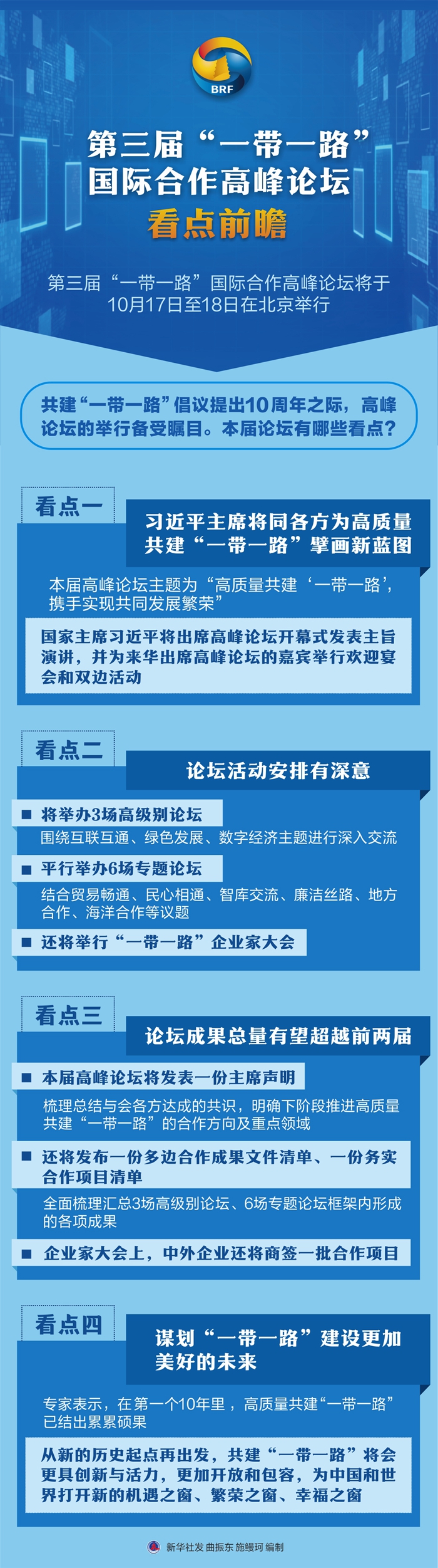 第三届“一带一路”国际合作高峰论坛将于10月17日至18日在北京举行。