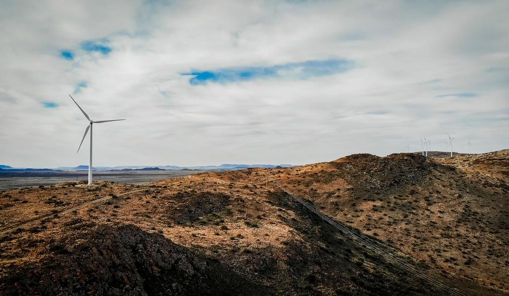这是7月25日在南非北开普省德阿镇拍摄的龙源南非公司德阿风电项目风机。新华社发(耶希尔摄)