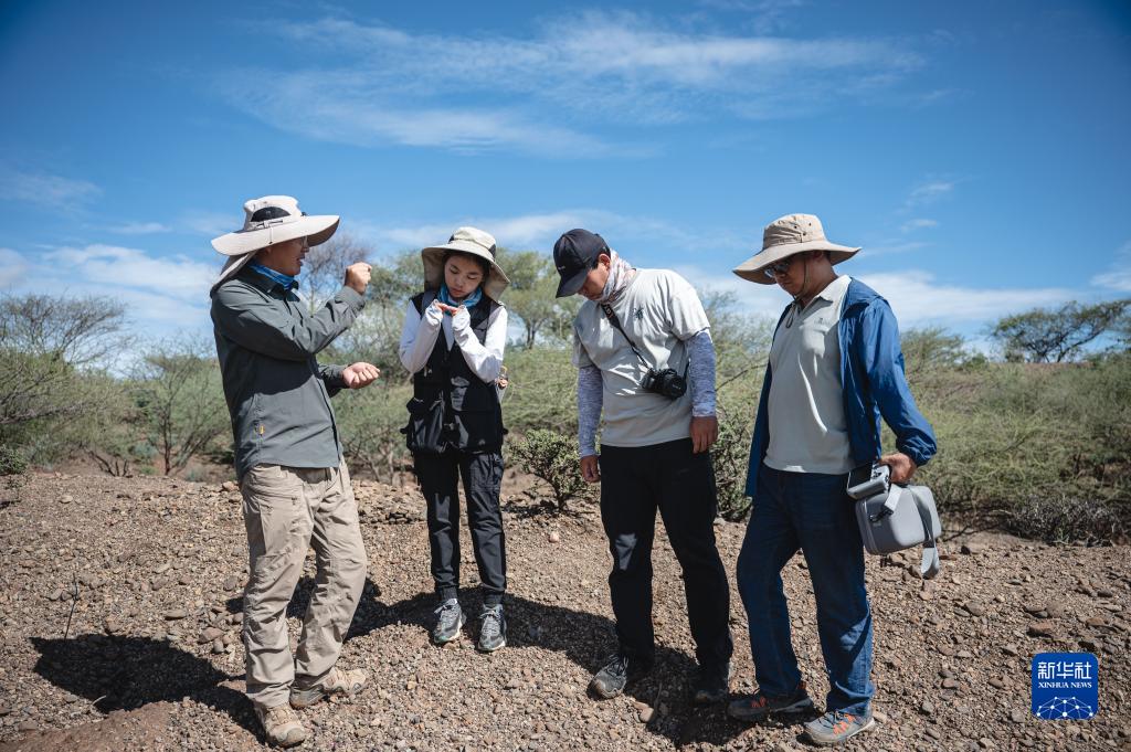 11月4日,中肯联合考古队队员在位于肯尼亚巴林戈郡马里加特镇的考古现场周边区域进行野外调查。