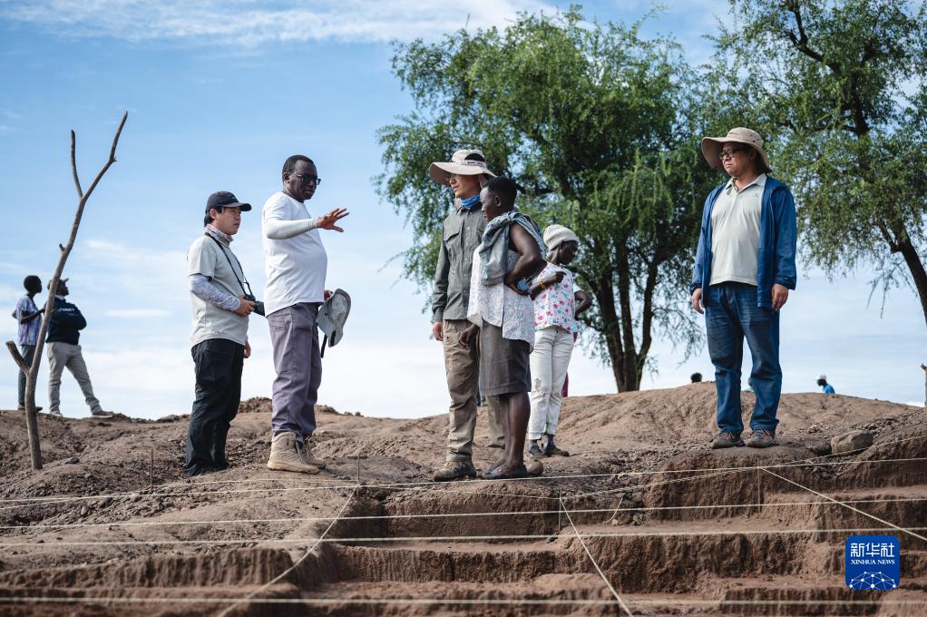 11月4日,中肯联合考古队队员在位于肯尼亚巴林戈郡马里加特镇的考古现场交流。
