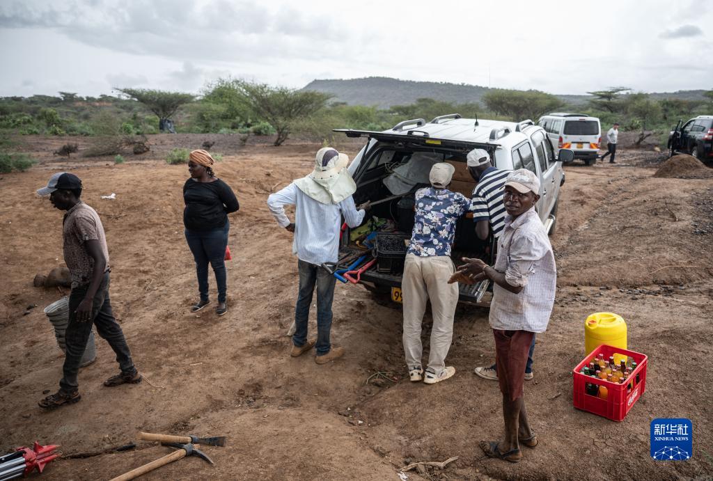 11月3日,中肯联合考古队队员在位于肯尼亚巴林戈郡马里加特镇的考古现场整理工具。