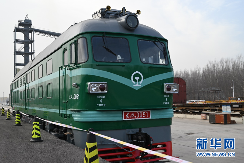 12月8日,停在马坊站的中欧班列火车头。新华网发 余申芳摄